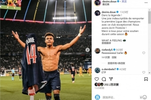 杜埃在社交媒体上晒出自己庆祝的照片,并写道:“传奇时刻!随这家非凡的俱乐部赢得首座欧冠奖杯,喜悦之情无以言表。我们创造了历史!