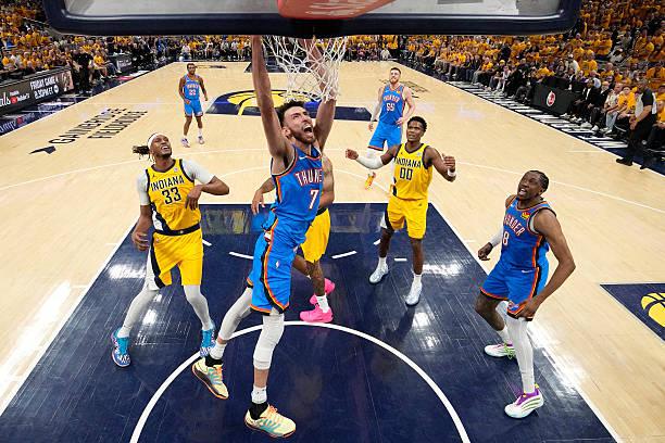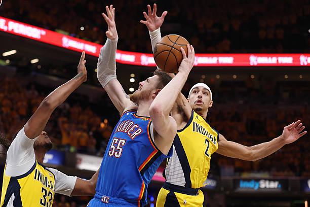 Sidery写道:目前雷霆在总决赛中只让切特-霍姆格伦(Chet Holmgren)和以赛亚-哈尔滕施泰因(Isaiah Hartenstein)一起出战了5分钟。雷霆相当于是彻底放弃身高方面的优势,这样做的目的是为了匹配步行者速度,结果这样的策略的效果却是适得其反。要知道在总决赛之前的季后赛比赛中,在霍姆格伦和哈尔滕施泰因在一起上场的时间里,雷霆可以净胜5.7分,这也能够说明他们的组合是能够起到极好的效果的。